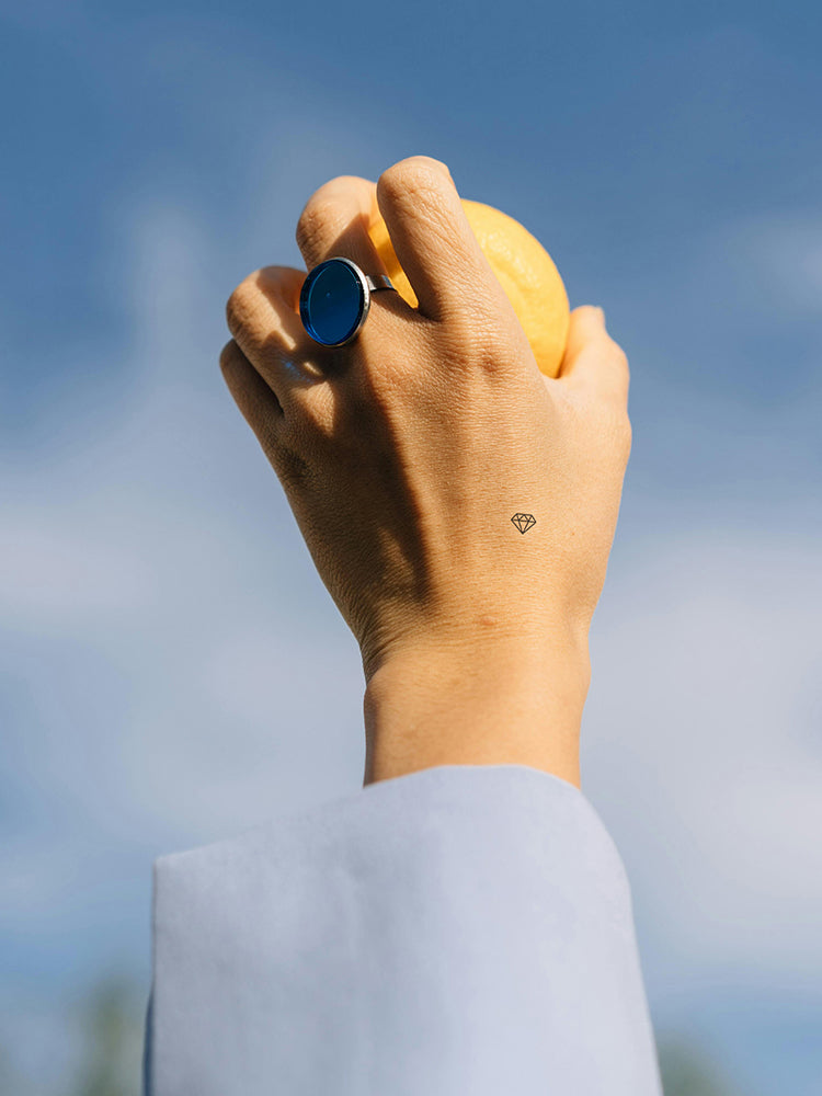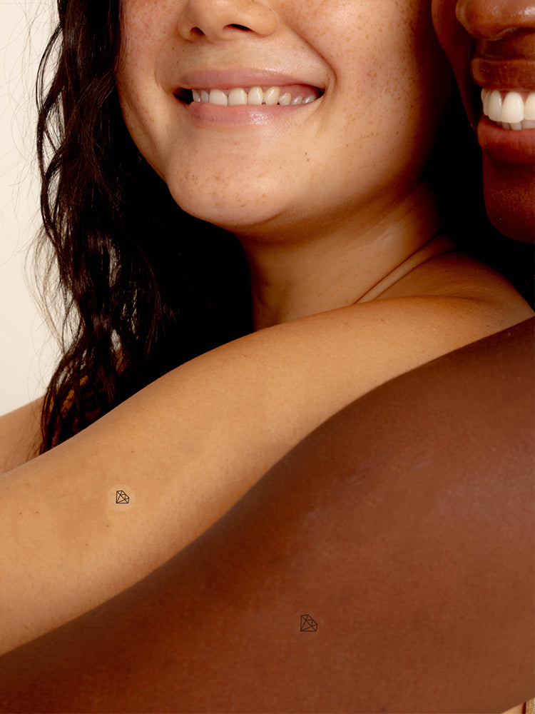 Jedes Patch trägt ein schwarz gedrucktes Diamond-Symbol und hat einen Durchmesser von ca. 12 mm.