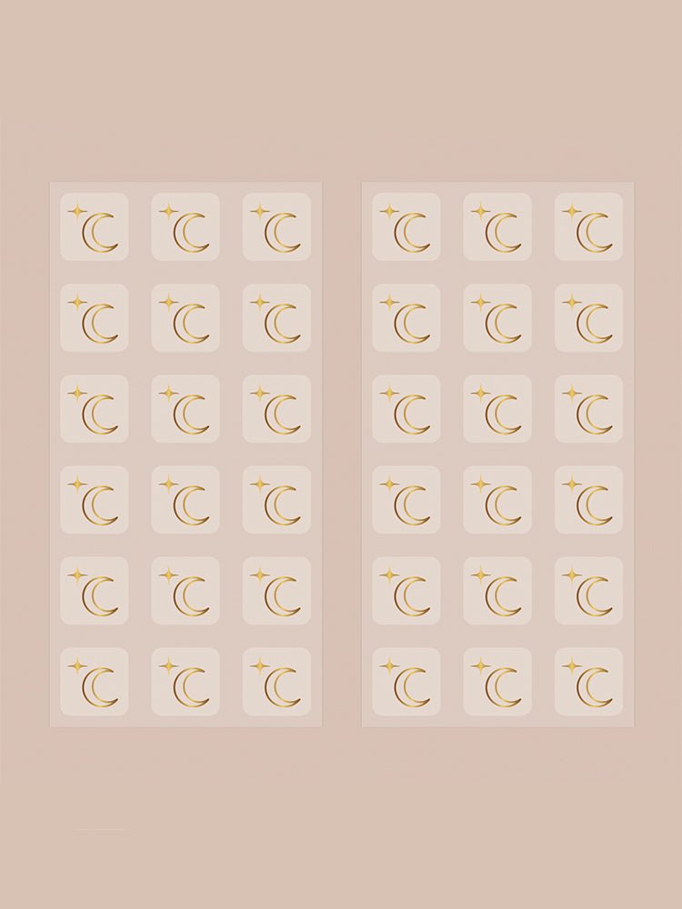 Ein Set enthält 36 Mini-Patches auf transparenter PET-Folie mit goldfarbenem Mond- und Sternmotiv.
