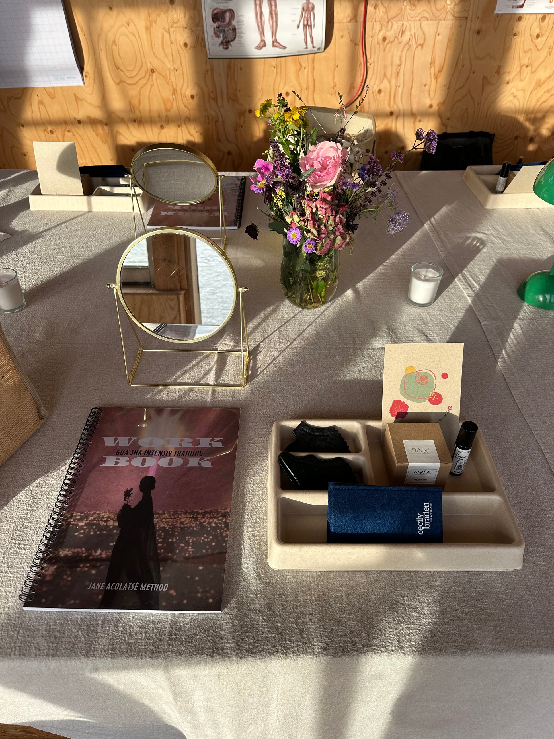 Im Preis mit inbegriffen sind 3 hochwertige Cecily Braden Gua Sha Pro Steine für dich als Starterset im Wert von ~360€, ein mit liebe gestaltetetes Goodiebag, ein Workbook, gesunde Snacks, Getränke und an beiden Tagen ein nährendes Mittagessen enthalten, sowie ein Zertifikat für dein Training.